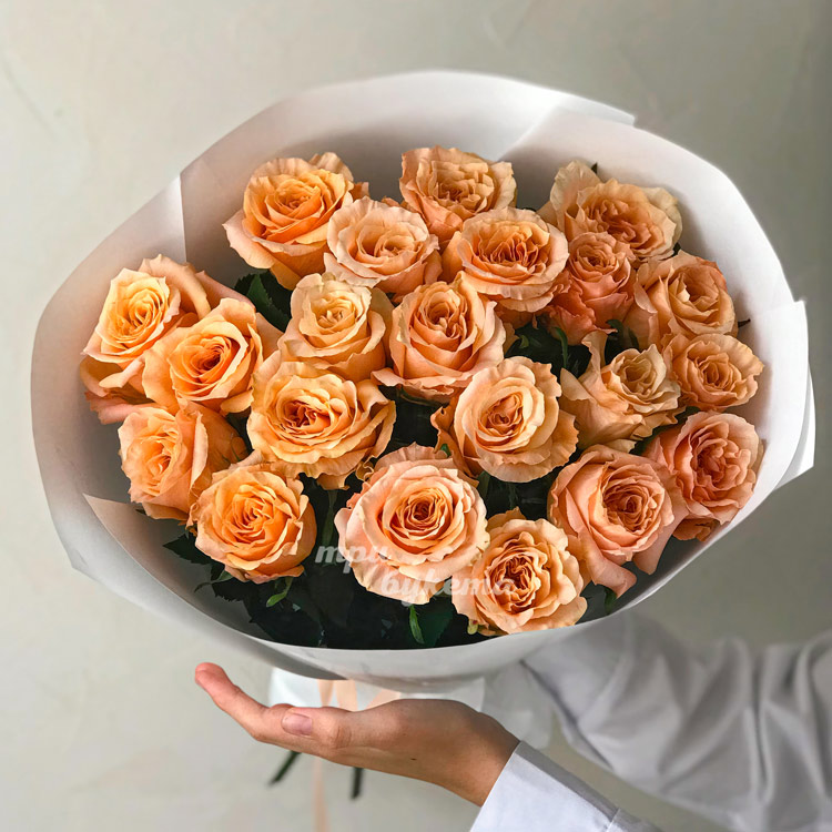 Букет из 21 персиковой розы Шиммер