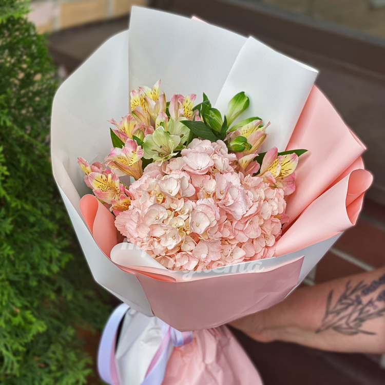 Букет из гортензии и альстромерий