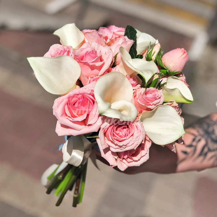 Букет из калл и кустовых роз