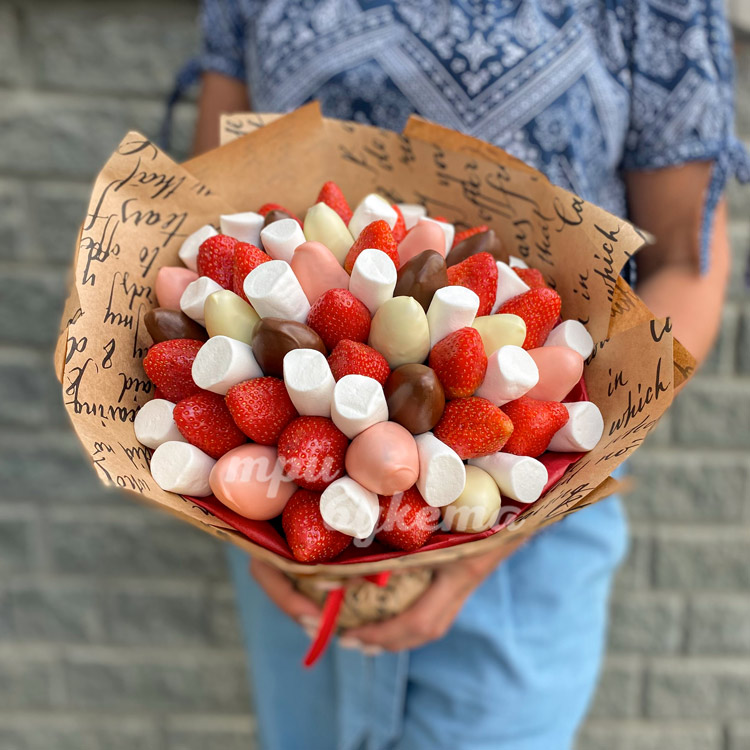 Букет из клубники в цветном шоколаде