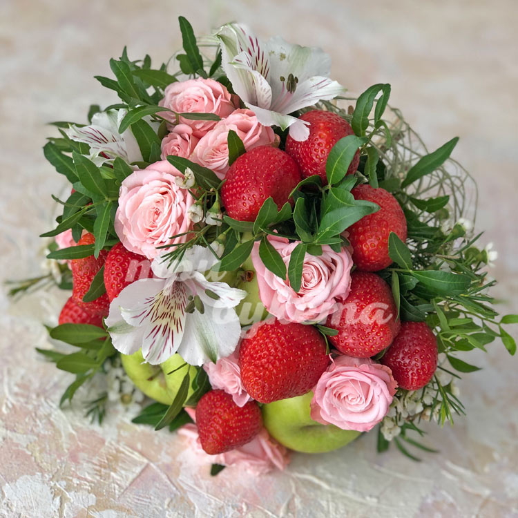 Букет из клубники, яблок и роз