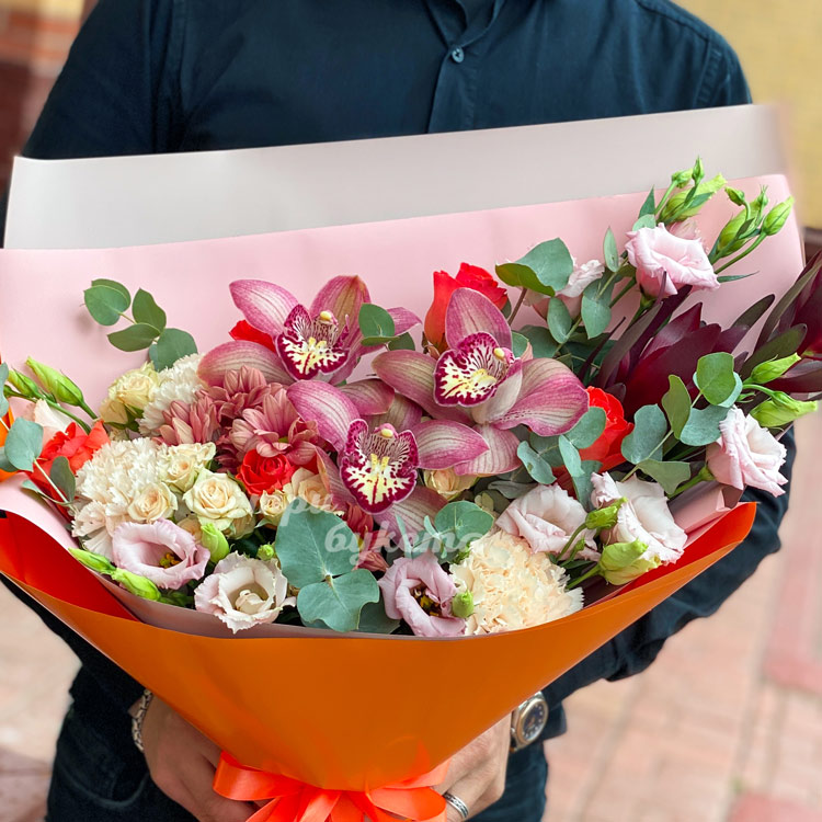 Букет из роз, орхидей и эустом