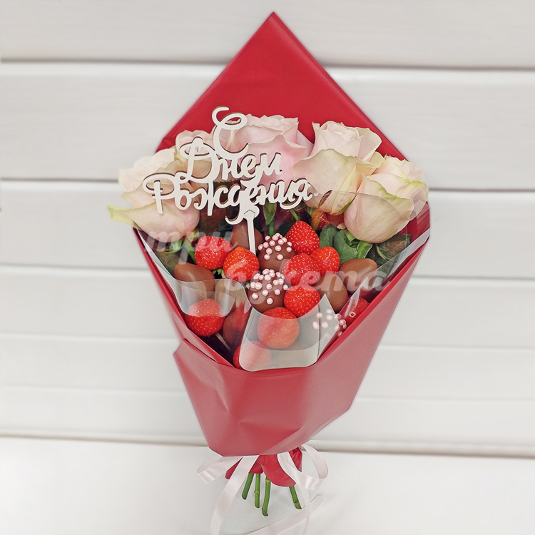 Клубника и розы на день рождения