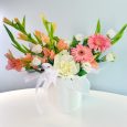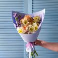 Коробка макарун с розами и фрезиями