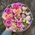 Коробка с хризантемами и персиковыми герберами