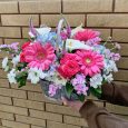 Корзина белых эустом и розовых роз