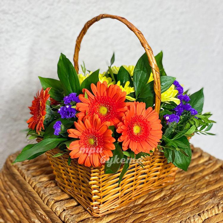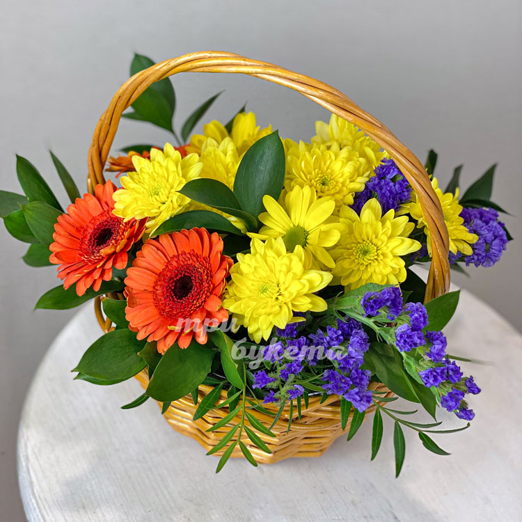 Корзина хризантем и лимониума