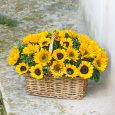 Корзина ярких роз и белых гвоздик