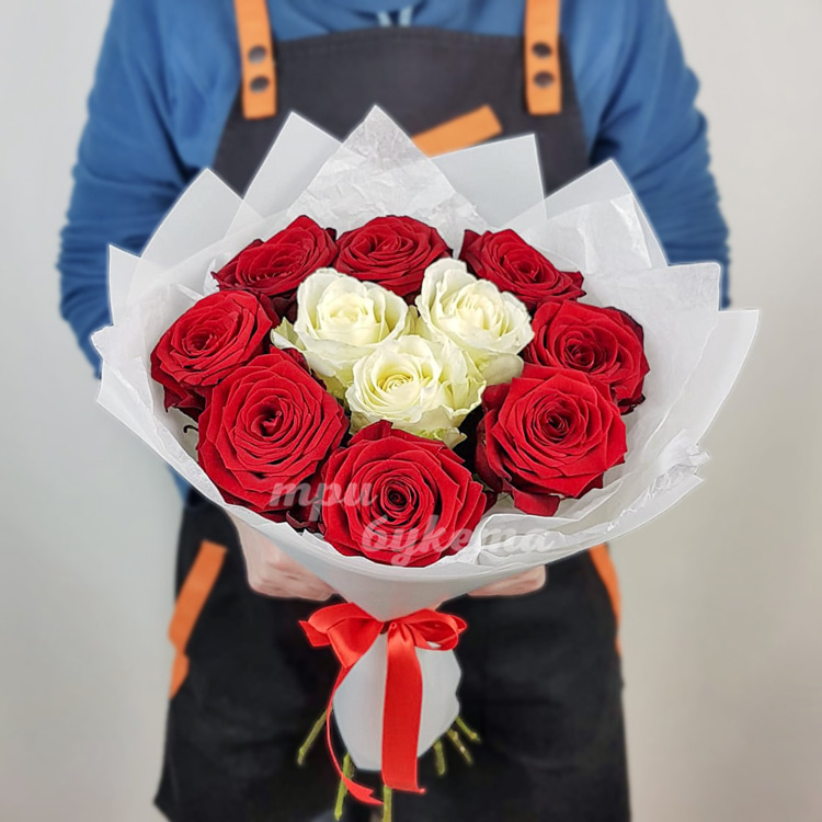 Небольшой букет белых и красных роз